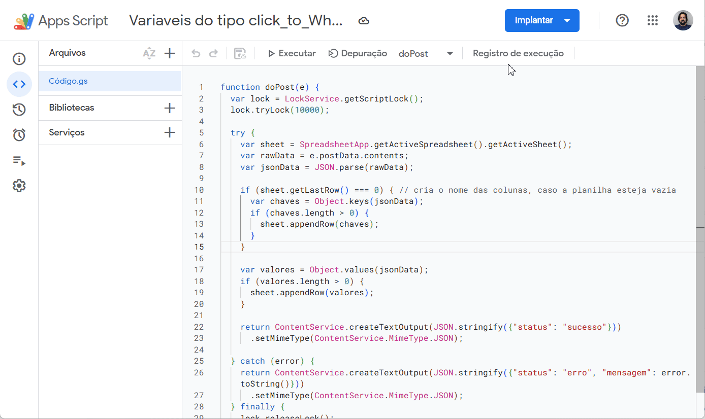 - Acesse Extensões > Apps Script.